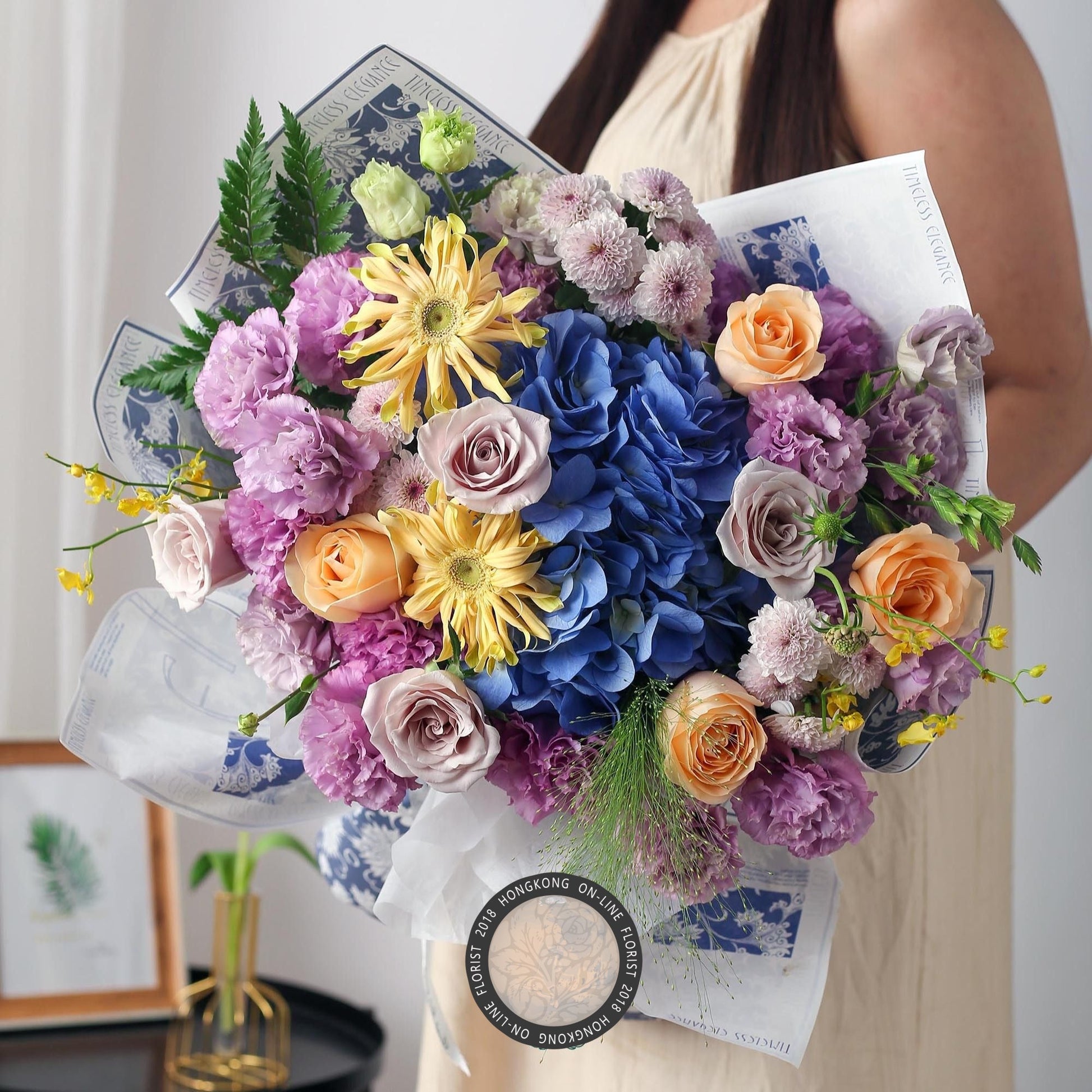藍繡球弗朗香檳鮮花香港鮮花即日配送